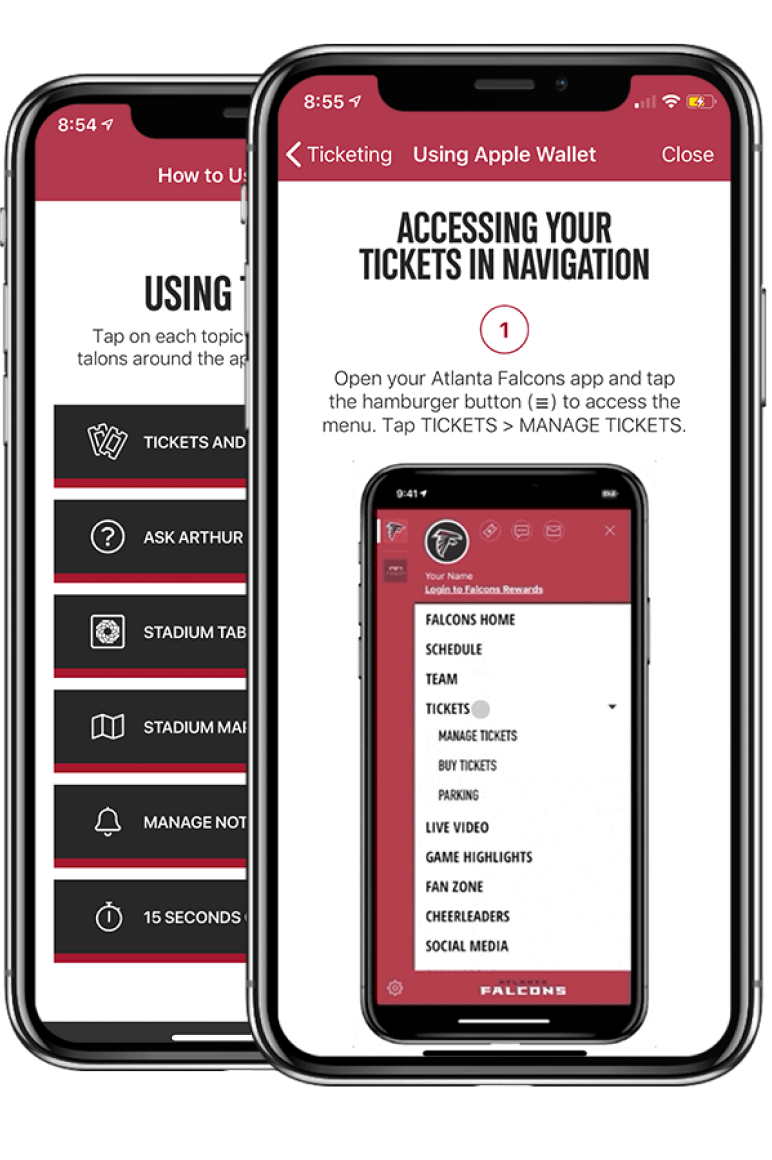 Taking it one step further, the Falcons included GIF animations to visually showcase ‘how-to’s’ for the most commonly used features of their app.